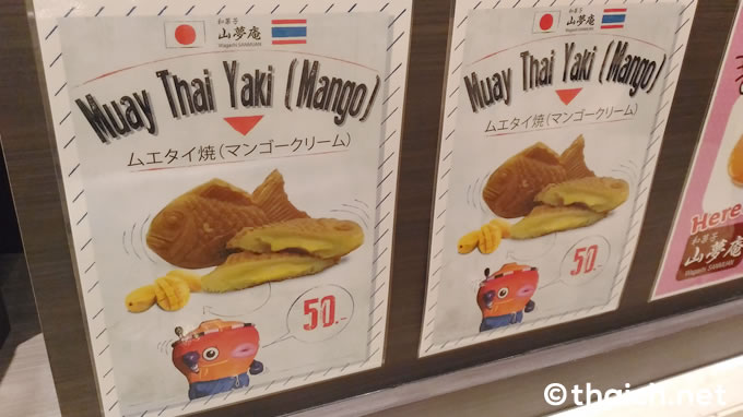 大きくポスターになっていたマンゴークリームの入った「ムエタイ焼き」(50バーツ)。