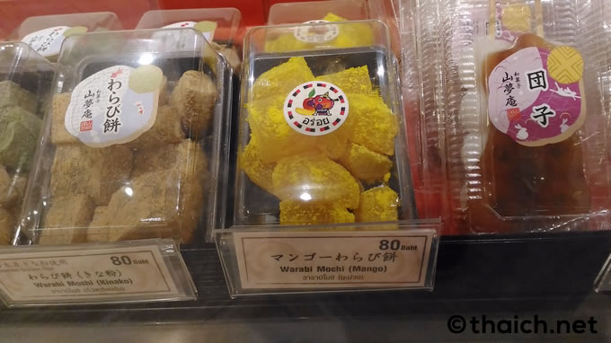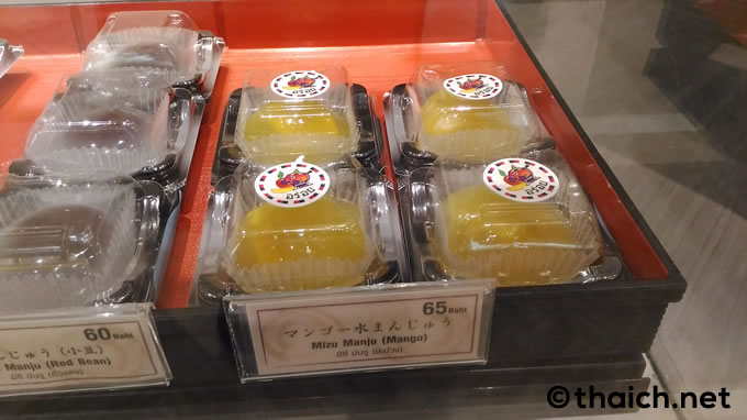 他にもムエタイシ君の大好物である、「マンゴー水まんじゅう」(一個65バーツ)と「マンゴーわらび餅」(一箱80バーツ)もありました。これも美味しそう!