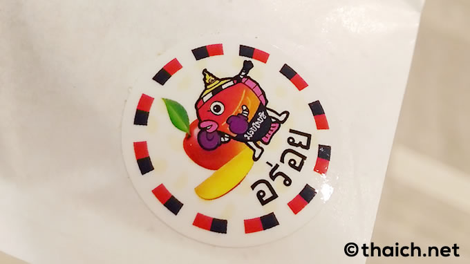 ちなみにムエタイシ君の商品にはムエタイシ君のアローイ(อร่อย)シールが付いています。ゆっくり少しずつ剥がすときれいに取れますよ。