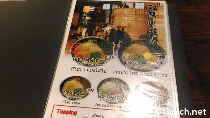 店内には「とんかつ」押しの文句が入った大きな垂れ幕が!「とんかつ定食」(159バーツ)、「かつ丼」(129バーツ)、「ソースかつ丼」(129バーツ)、「カツカレー」(159バーツ)と、とんかつメニューも大充実のラーメン屋さん「がんてつ」でした。