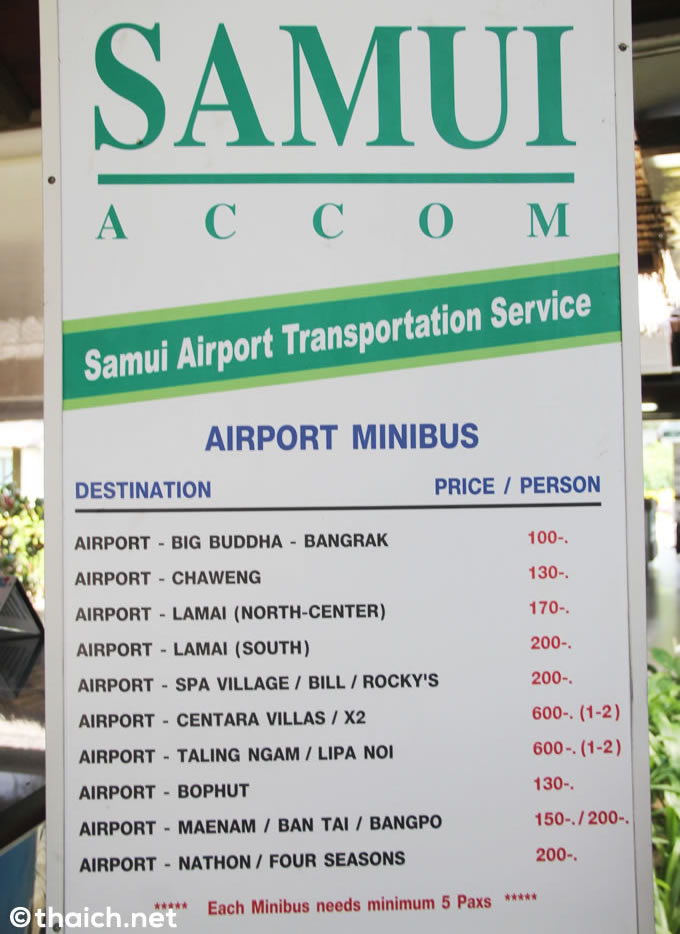 高いのでタクシーは利用したくない方もご安心ください。乗り合いのミニバスも出ています。これであればビッグブッダまで1人100バーツ(約300円)。もっとも沢山の人で賑わうサムイ島の中心地であるチャウエンまでも130バーツです。ただし5人以上集まらなければ出発しません。