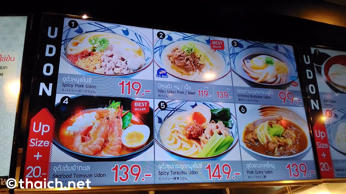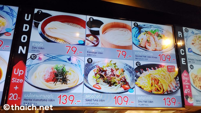 タイでも丸亀製麺はもちろんセルフサービス。カウンターの上には写真付きのメニューが並びます。