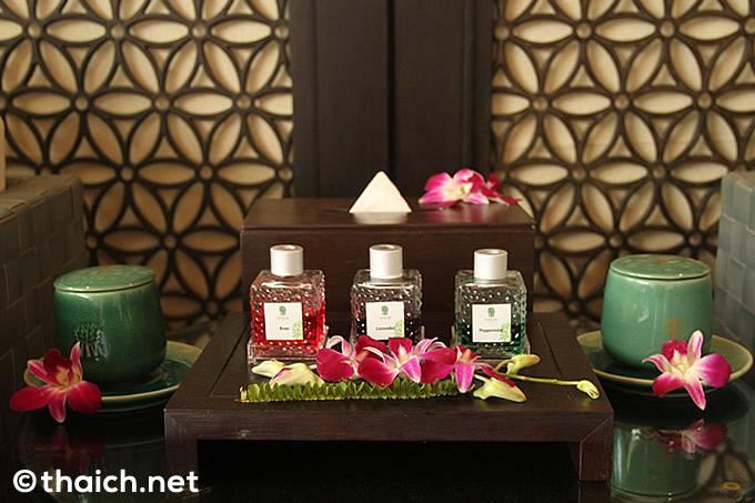 痛い場所、アレルギーの有無、マッサージの強さなどを事前にチェックし、好みの香りのアロマオイルを選びます。ローズ、ラベンダー、ペパーミントの三種類から。