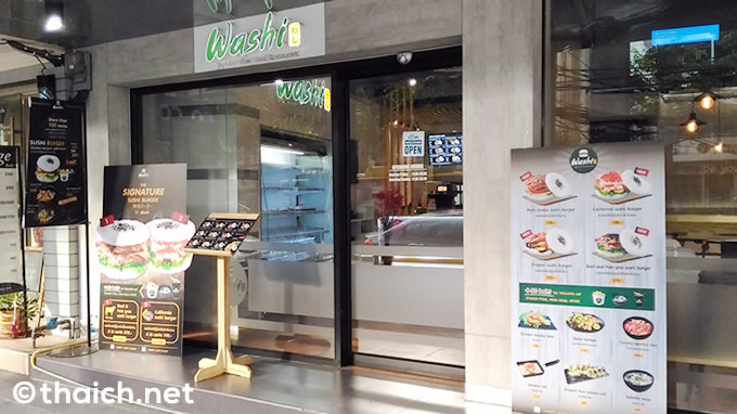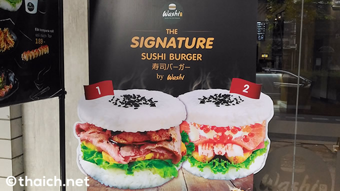 バンコクのアソークとプロムポンの間、スクンビット通り沿いにあるジャパニーズファストフード店「Washi(わし)」に行ってきました。このお店で食べられるのはなんと寿司バーガーです!