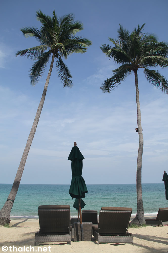 ということで曇りがちな天気が続く「バンヤンツリー・サムイ」での滞在でしたが、プライベートビーチを訪れた時には綺麗な青空が広がっていました。海も波がなく穏やか。