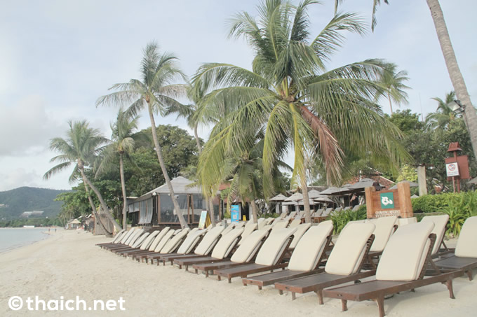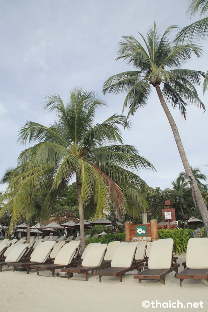 それではお待ちかねのビーチ。プライベートビーチではないですが、プールの前に並ぶチェアは「チャウエン リージェント」宿泊者用です。