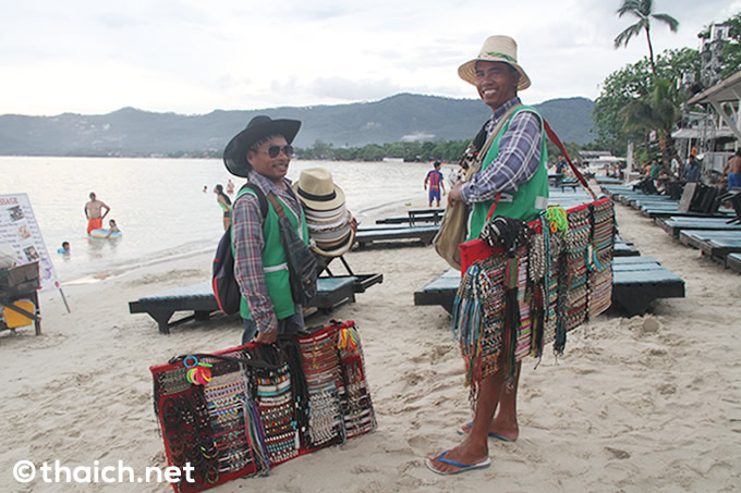 タイのビーチ名物の物売りのおじさん達もいました。値段の交渉をしながら、南国の雰囲気いっぱいのアクセサリーやお土産を買うのも楽しいですね。