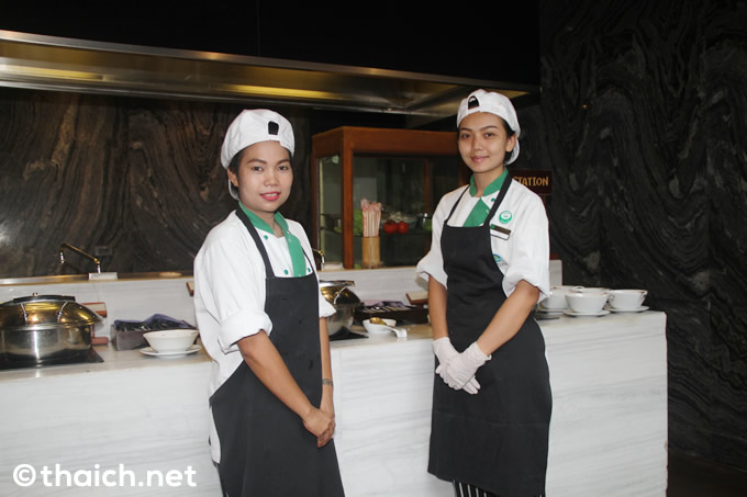 調理担当のスタッフさんたち。美味しい朝食をありがとうございます!こちらは「スープステーション」。タイのヌードルなどスープものを注文。