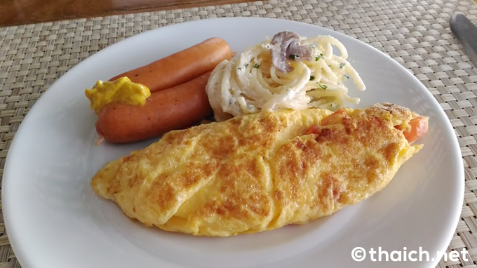 美味しいオムレツを作っていただきました。スパゲティも添えてみたのですが、これが想像していたよりもめちゃ旨!