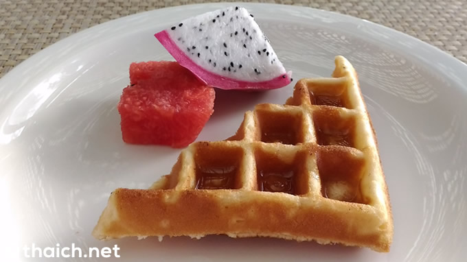 だいぶお腹がいっぱいなので、フルーツを少々。お腹いっぱいといいつつ、良い香りに惹かれてついでにベルギーワッフルまでいただいてしまいました。