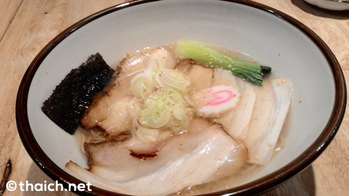 注文したのは20バーツのリフィールOKの「緑茶」20バーツと、「豚珍館ラーメン」の看板メニューのひとつだという「塩ラーメン」のミニサイズ(160バーツ)。