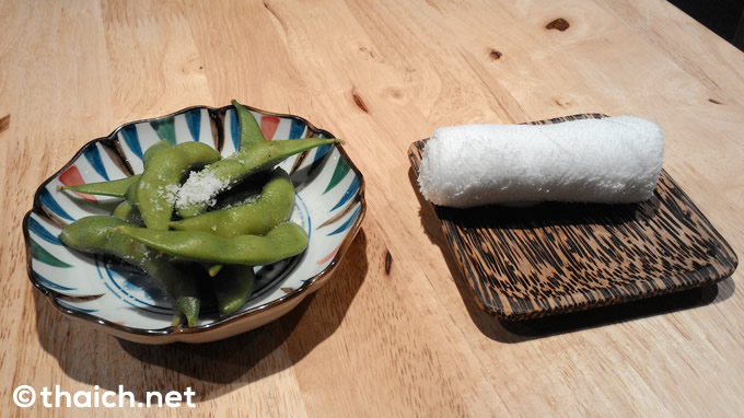 待っている間に出てきたサービスの「枝豆」は、ビールが欲しくなりますね(笑)。メニューにはビールはもちろん日本酒や梅酒もあって、おつまみメニューも色々ありました。