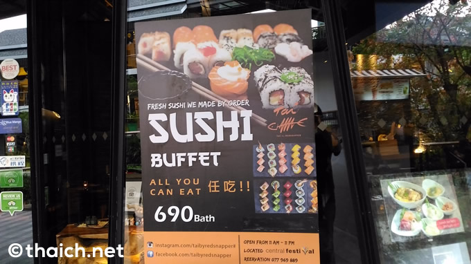 最後にこちらが、「タイ(Tai)」というお店。690バーツでお寿司食べ放題もやっている、西洋人に大人気のお店。実はここはチャウエンビーチで唯一の日本人シェフがいるお店なんです。