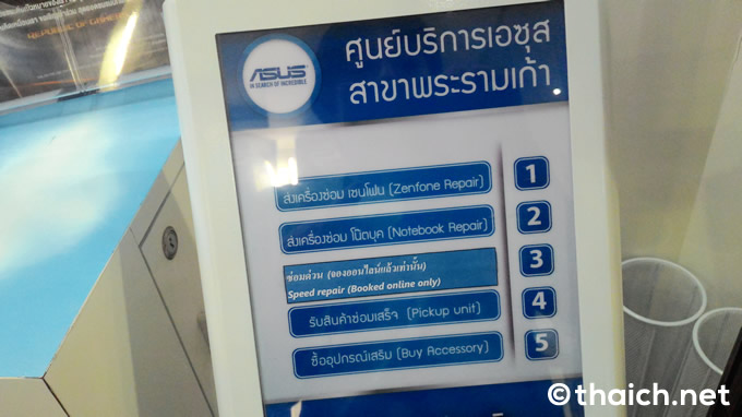 まずはASUSTek Thailand(コールセンター 02-401-1717、毎日 8:30 – 20:30)に電話で問い合わせると、修理にかかる期間は部品があれば3日から5日、部品がなければ2週間くらいかかると言うことでした。また、修理中も代替機はないそうです。