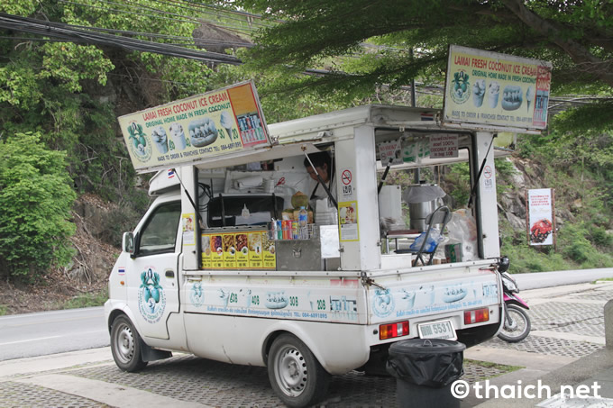 アイスクリームを販売するトラックがいたので、20バーツのココナッツアイスクリームを買って一服です。