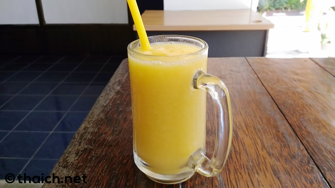 60バーツの「マンゴーシェーク」で喉を潤しました。美味しい!