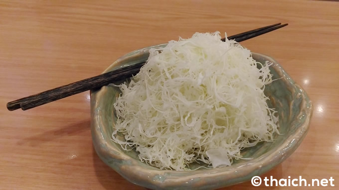 注文を終えると、すぐにキャベツと胡麻が運ばれてきました。キャベツは極細の千切りで、食感がフワフワ。いくらでも食べられてしまいそうな感じ。キャベツは食べ放題です。