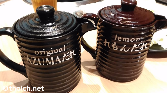 タレはオリジナルのAZUMAだれとレモンだれ。お好みでどうぞ。