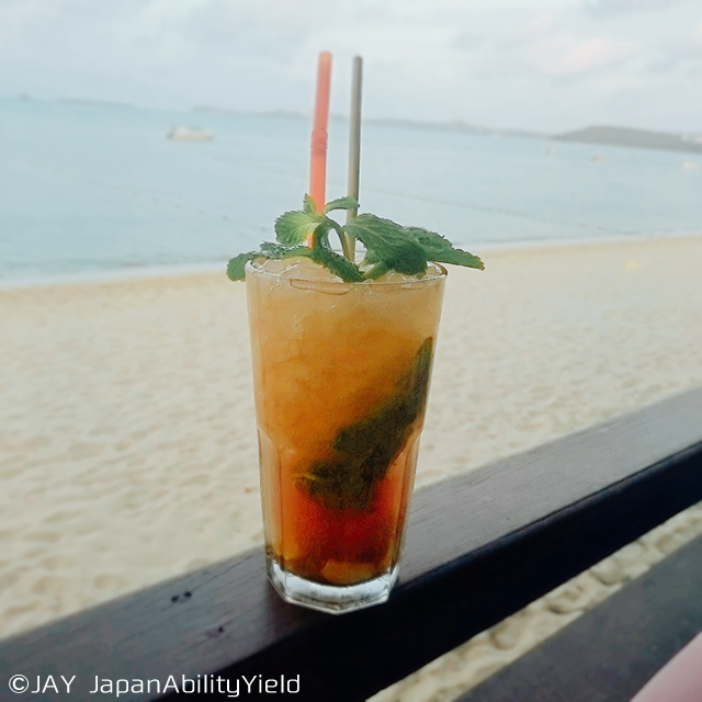 飲み物は南国気分を味わうためにモヒートを注文しました。少し茶色みがかっており最初はびっくりしましたが、とっても爽やかなお味で大満足です。
