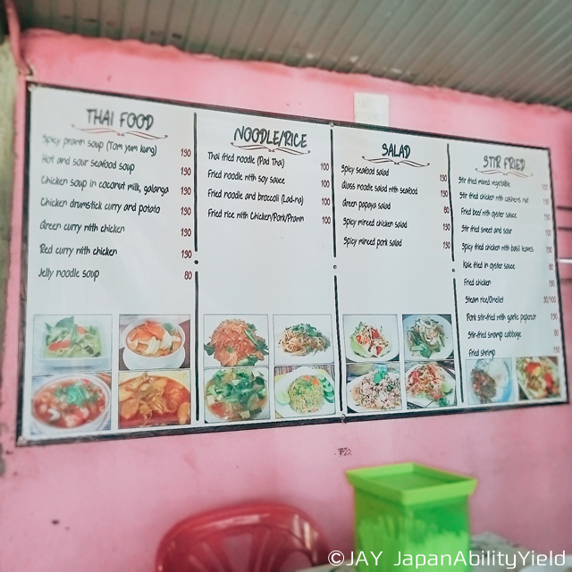 そんな中、脇道の奥を覗くと、雰囲気のよさそうな地元の食堂らしきものを発見!その名も「Thai Food」。そのまんま!!サムイ島ではどんなに小さな飲食店でさえFree Wi-Fiがあるので本当に便利です。日本も頑張らねば!!