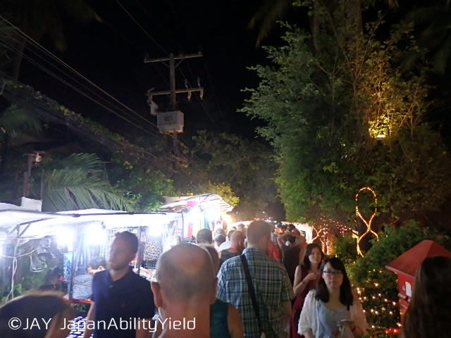 サムイ島の北海岸に位置するボプットビーチにあるフィッシャーマンズビレッジでは、毎週金曜日の17:00~23:00までウォーキングストリートというナイトマーケットが開催されています。ところ狭しと露店が出ており、島中にいる観光客がここに集まっているのではないかと思うほど賑わっています。中にはタイ人の家族連れなどもおり、地元の方にも人気が高いことが伺われるナイトマーケットです。露店では洋服、ジュエリー、サングラスにハーブやスパイス、さらには健康ドリンクの空き瓶に入れて売られているお手製のココナッツオイルなど、見ているだけでも本当に楽しくなってしまいます。