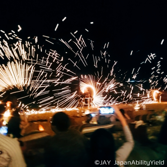 そして突然始まったファイヤーショー!燃えてます、燃えてます!!命知らずのお兄さん達がファイヤーブンブン回していて火傷しないかとハラハラドキドキですが、ここ一番の盛り上がりを見せていました~。