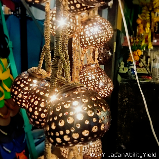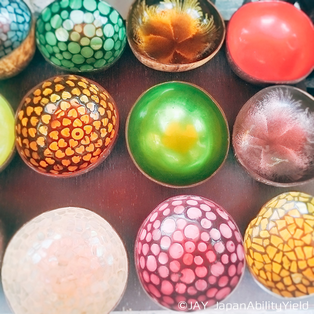 やはりココナッツアイランドと称されるサムイ島だけあって、ココナッツの殻を使った工芸品が数多く揃っています。