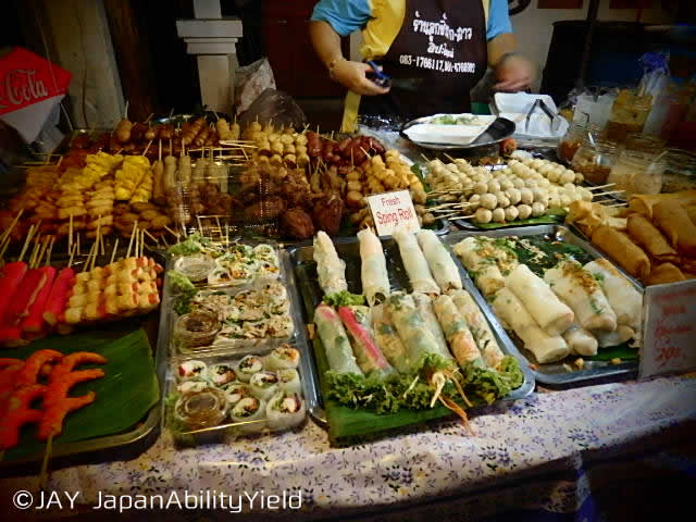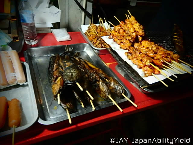 もちろん食べ物の露店も数多く出ています。生春巻き、焼き鳥、焼き蒲鉾、焼き魚に焼きソーセージ!