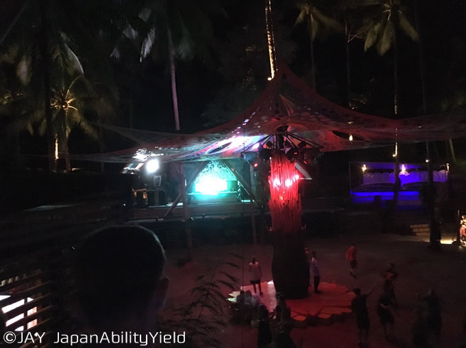 「ハーフムーンフェスティバル」は月に2回、21:00~翌5:00まで、半月の夜に開催される人気の高いパーティーですが、入場料はワンドリンクとお土産のストラップ付きで、なんと1,400バーツ(約4,200円)!事前にネットからチケットを購入すると1,200バーツ(約3,600円)で入場可能ですが、いずれにしろお高い…。一頃から比べるとだいぶ値上がりしたような…。一説には入場料を高くすることにより安全性を担保しているとか??
