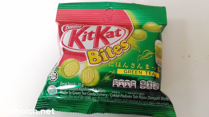 先日はタイで売られている板チョコ風になっているキットカット「Kit Kat BAR」をご紹介しましたが、今回はまん丸のボール状になっているキットカット「Kit Kat Bites」をご紹介。コンビニで「Kit Kat Bites」の日本産抹茶味があったので早速買ってきました。ちなみに「Kit Kat Bites」の”Bites”というのは”一口サイズ”という意味です。