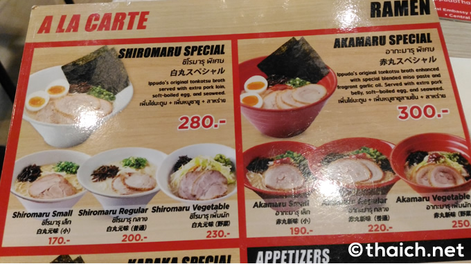 今回訪れたのはターミナル21の地下にある一風堂。200バーツの「白丸元味(普通)」をオーダーしました。ちなみにお会計時はサービスチャージなどがと税金が加算されて235バーツでした。