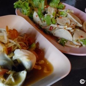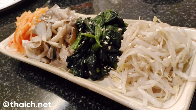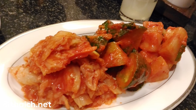 焼肉のサイドメニューといえばこれ。「ナムル」と「キムチ」。「キムチ」は90バーツですね。お手頃価格!