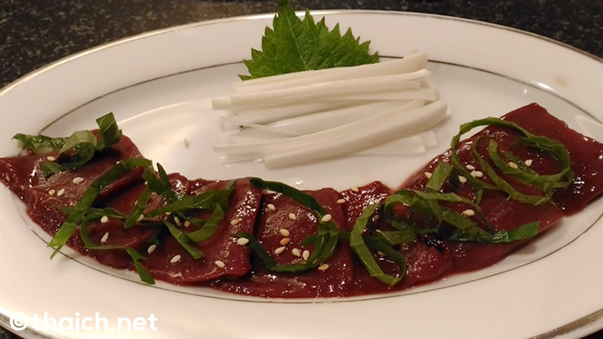 こちらも日本で食べる機会が減った「レバー刺し」。250バーツ。
