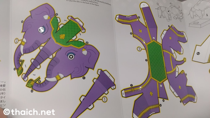 この象さんは、ヒンパーン森に計10頭生息するという「モング・コン・ハット・ティー」。博愛の心を持った象さんで、「トライ・プーム・プラ・ルアング(ไตรภูมิพระร่วง)」という叙事詩の中で描かれているそうです。これが紫、ピンク、赤、黄色の4色。