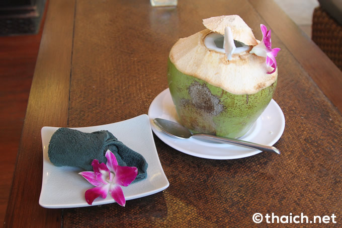 ここでのチェックインはココナツジュースと共に。サムイ島は、島全体をヤシの木に覆われた別名”ココナッツアイランド”とも呼ばれます。いわばココナッツはサムイ島のシンボルです。