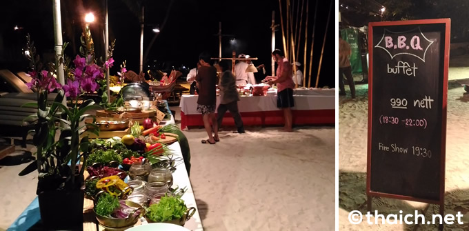 この日の催しは、BBQ(バーベキュー)ビュッフェで、なんとファイヤーショー付き!ますますリゾート気分が高まるこのビュッフェの価格は990バーツ(約3000円)で、時間は18時から22時まで。ファイヤーショーのスタートは19時半からです!