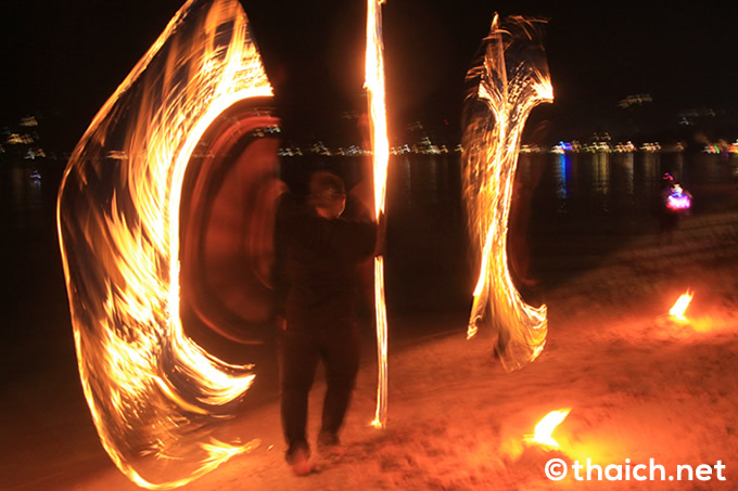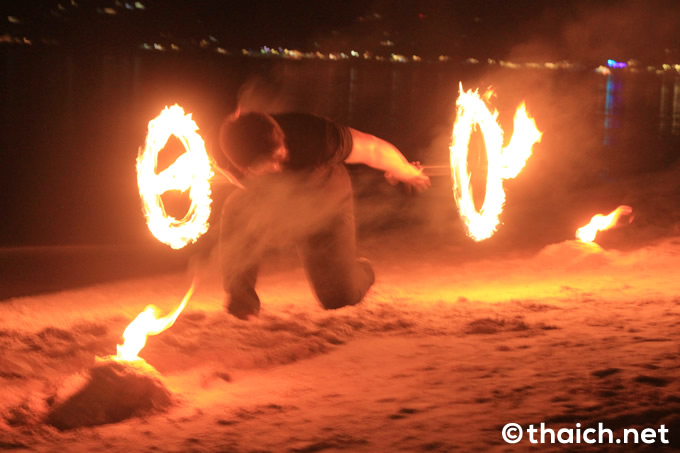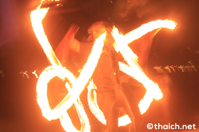美味しい食事を沢山いただいたところで、お待ちかねのファイヤーショーの時間。パフォーマー二人によるファイヤーショーが、まさに目の前で始まりました!