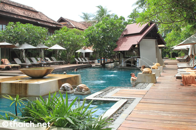 「チャウエン リージェント」のプールは二つ。1つはビーチの目の前の広々とした空間のプール。ここは家族連れも多く、ワイワイと楽しい雰囲気。