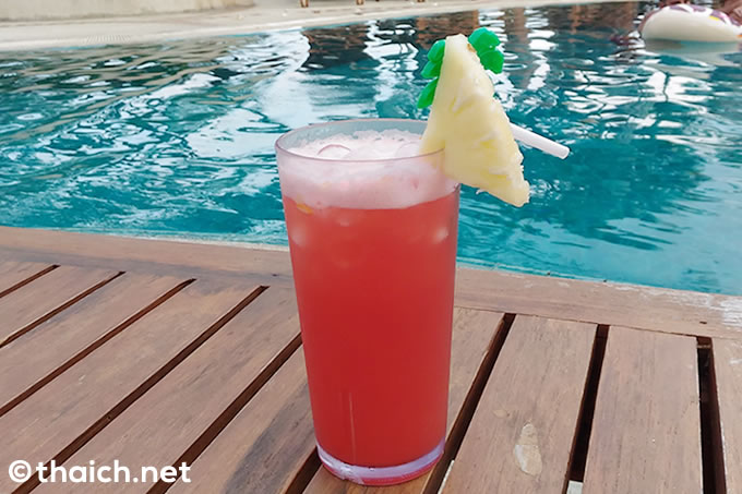 オーダーしたのはシグネイチャーカクテル、つまりこのホテルご自慢カクテルの中から「Island Quencher」です。タイのラム酒・メコンがベースのトロピカルな一品です。