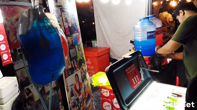 点滴の袋や注射器に入ったドリンク。お洒落系マーケットの定番です。