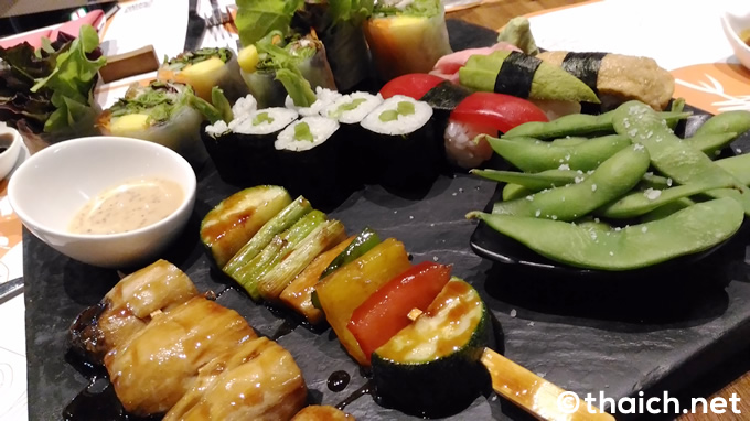 つづいて「フロム ザ ガーデン(FROM THE GARDEN)」(480バーツ)。実はこれ、ベジタリアンメニュー。串焼きもお寿司も全部野菜なんですよ!