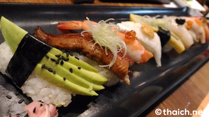 最後に握り寿司の人気トップ10を集めた「TOP 10 NIGIRI」(950バーツ)。フュージョン和食のお店ですから、握り1つ1つにも工夫が凝らしてあり色鮮やか。あれもこれも美味しそうで、どれから食べようか迷ってしまいます!