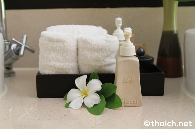 自然環境を守ることに強いこだわりがある「ザ・トンサイベイ」の部屋では、出来るだけプラスチック製品を使わないようにしているそうです。飲料水もペットボトルでなくガラスの瓶で、ランドリーバッグも布製。唯一見つけることが出来たプラスチックは、シャンプーやボディーソープのボトルのポンプ部分のみでした。