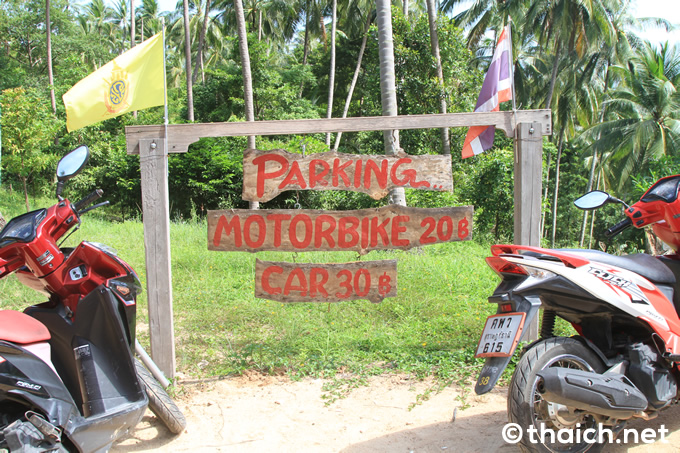 パーキングにオートバイを停めて滝へ向かうのですが、20バーツの駐車料金と書かれているものの徴収する人はいませんでした。