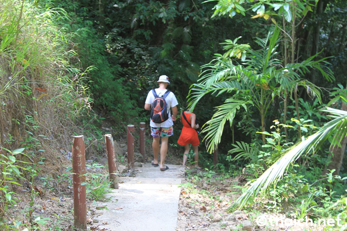 大通りから標識通りに山へと向かう道へ入ると、ジャングルを切り開いたかのような細い道が続きます。