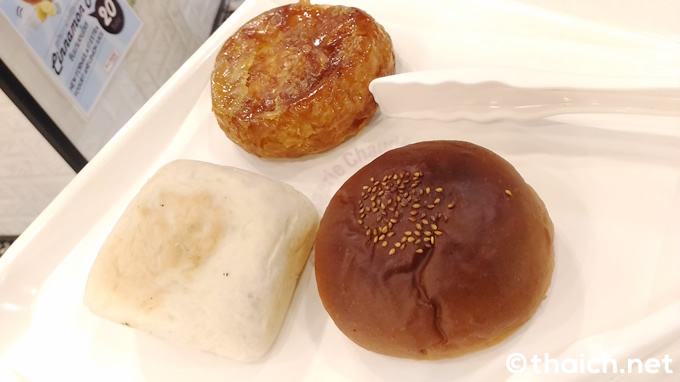 普通のアンパン「Red Bean Bun」(22バーツ)と、パン生地がモチモチしている「Mochi Red Bean Bun」(25バーツ)、そしてフランスの洋菓子の1つであるクイニーアマン「Kouign Amann」(22バーツ)を購入。