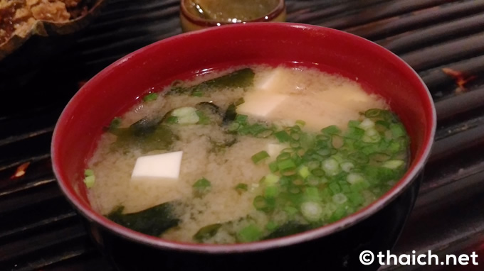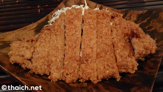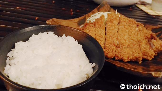 海苔巻きメニューや鉄火丼、サーモン丼などの海鮮メニューから、ホイル蒸しやコロッケのような家庭的なメニューまでたくさんあるのでしうが、オーダーしたのは「とんかつ」(220バーツ)と「ご飯と味噌汁」(40バーツ)。