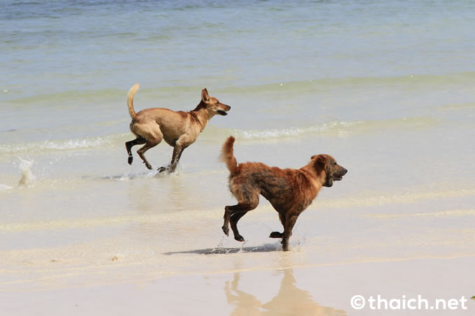 ビーチをピョンピョンと跳ね回っています。