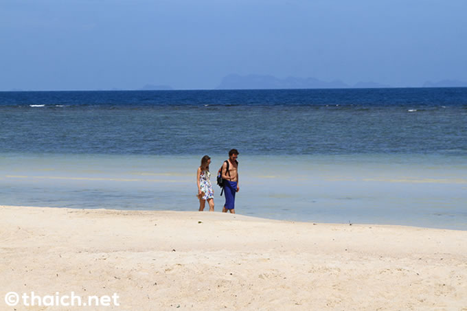 船が着くトンサラから、ハードソンビーチへは約10キロほどの距離。レンタルバイクで行けばおよそ20分ほどで到着でしょう。駐輪場にバイクを停めて坂を降りるとそこは人陰もまばらな、静かなビーチでした。