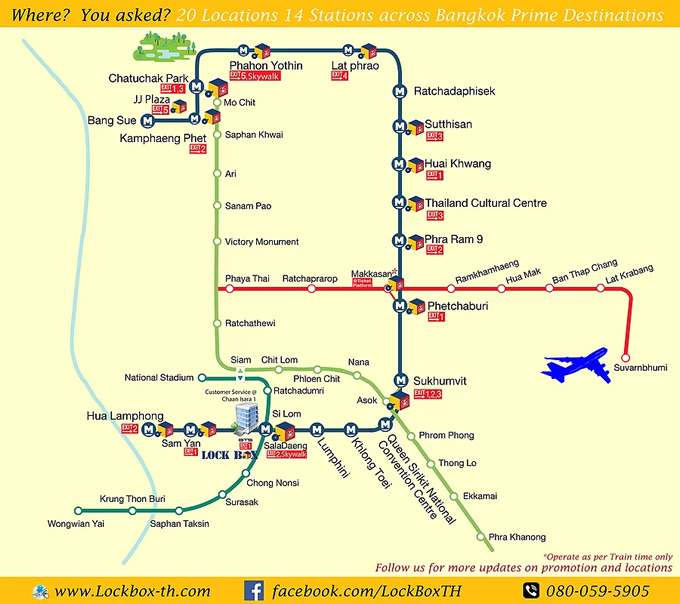 そんなタイで誕生したコインロッカーサービスが「LOCK BOX」。2016年にスタートし、最初はサイアムなど大きな駅のみの設置でしたが、最近では続々と増殖中。2017年8月現在では、14駅20箇所に「LOCK BOX」が設置されています。